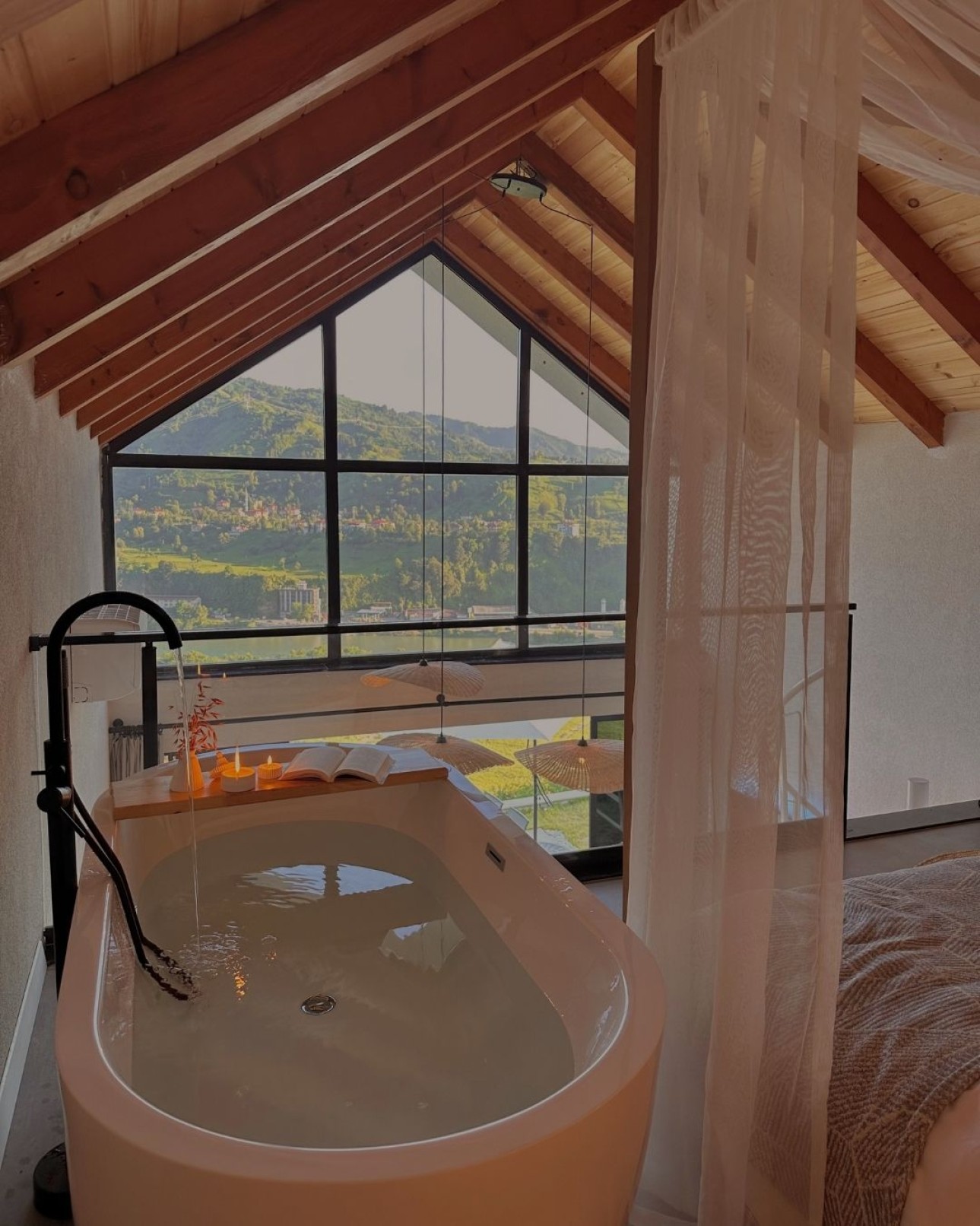 Bohemi Dubleks Bungalov, 2-3 kişilik konaklamalar için özel olarak tasarlanmış iki katlı yapısıyla misafirlerine hem konforlu hem de huzurlu bir kaçış sunuyor. Karadeniz’in eşsiz doğasında, 50 m²’lik yaşam alanıyla tasarlanan bu özel bungalov; sadece size ait geniş çim ve seramik döşemeli bahçesiyle, dağ, deniz ve Fırtına Deresi manzarasını bir araya getiriyor.